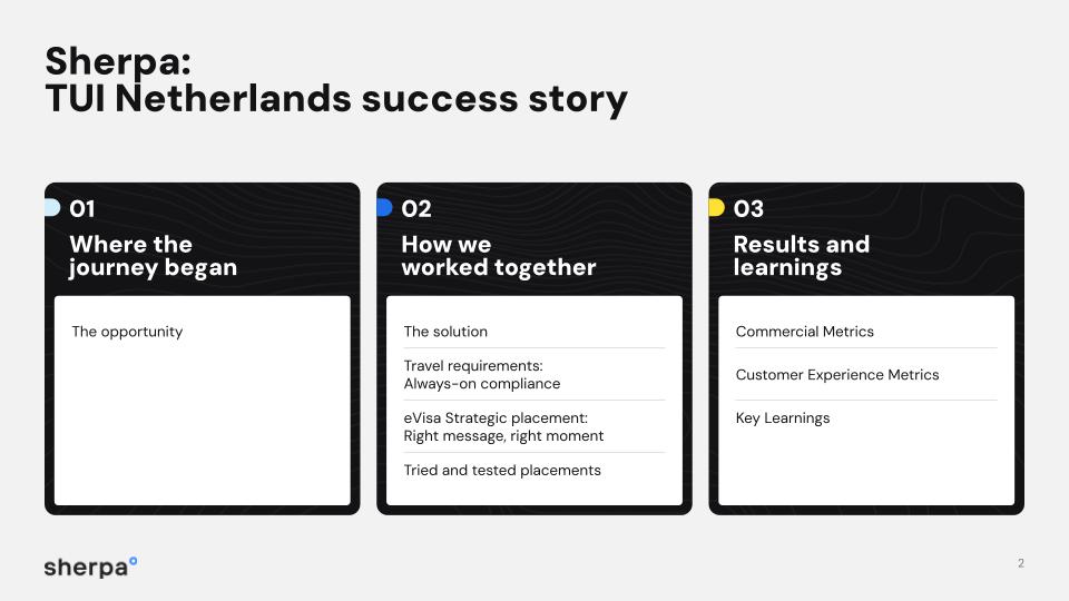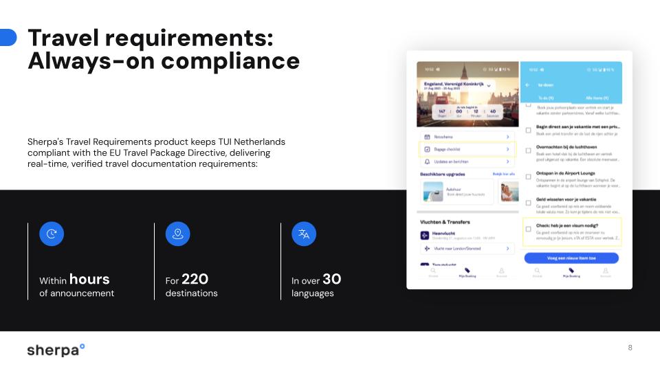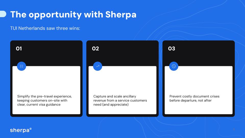 TUI Netherlands is one of Europe's most recognised travel brands, serving 1.6 million passengers a year across sun-soaked beach holidays and further-flung adventures. When they set out to simplify the pre-travel experience for their customers, they turned to Sherpa to embed visa guidance and eVisa applications directly into their booking journey.